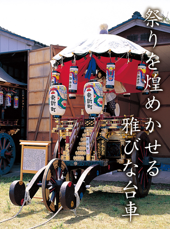 およそ200年ぶりに新調された大車輪を履き、藤塚神社境内に眩く鎮座する美川中町の台車。