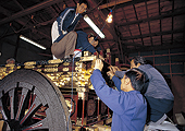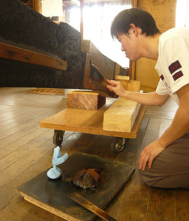 新調された大車輪の木地部品に、堅牢な「錆付け」作業が幾度も繰り返されます。