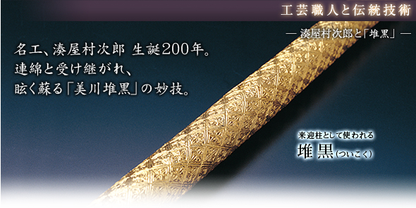 彼の数々の技法の中でも特に「堆黒」は伝統文化的希少価値が非常に高く、全国の仏壇産地でもその例はなく、唯一、美川仏壇の職人達によって頑に守り続けられています。