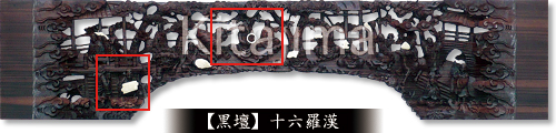 宮殿廻りに飾り付けられる雲を彫り込んでいるところ