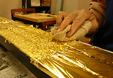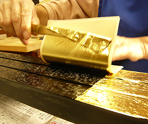 ↑金箔の上に透き漆が塗られた戸裏縁の框部分