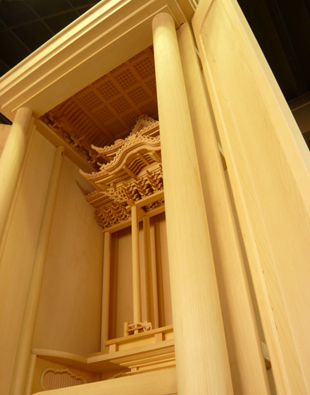美川仏壇では、一旦、各部品の木地を組み上げて、木地完成品をご注文主様にご確認いただく「木地見せ」を行なっております。