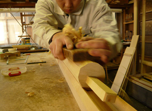 平カンナから丸カンナに替えて、さらに丸くしていきます。